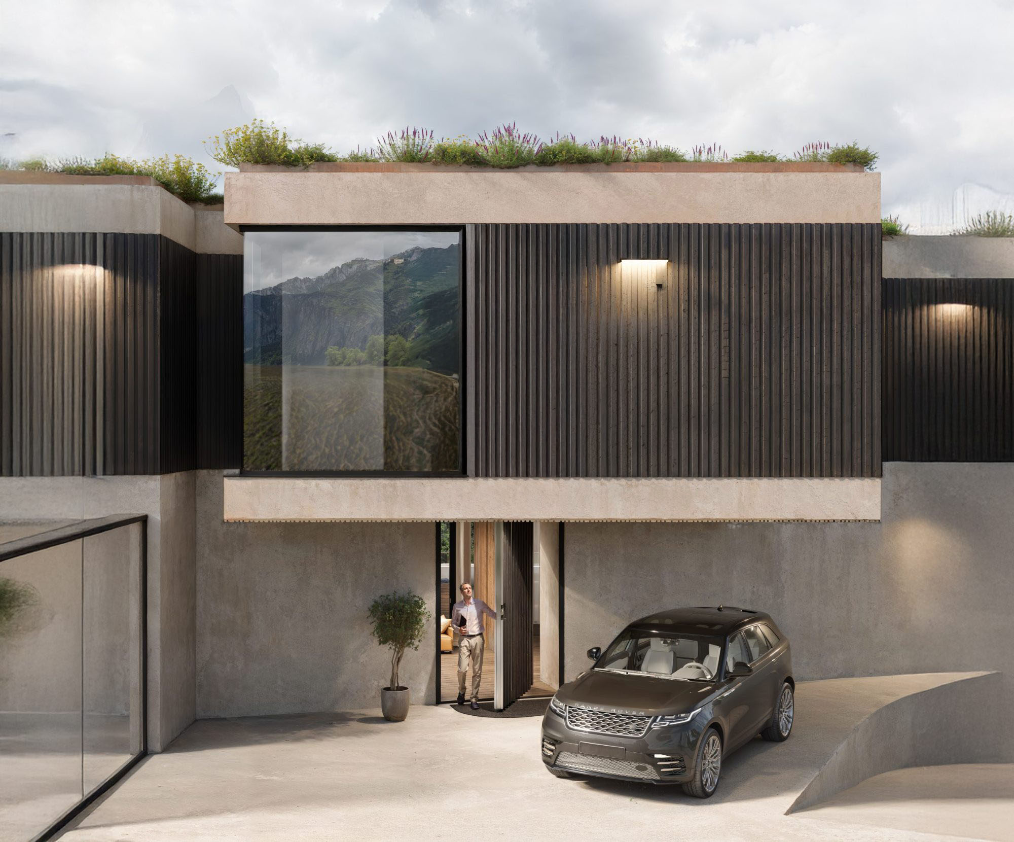 O casă modernă pasivă cu geamuri ample care lasă lumina naturală să inunde fiecare încăpere și cu spațiile interioare mari care sunt aerisite și calde. Exteriorul minimalist devine parte din decorul de zi cu zi.